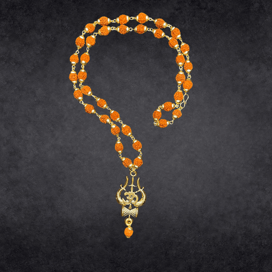 GOLD PLATED TRISHUL RUDRAKSH MALA